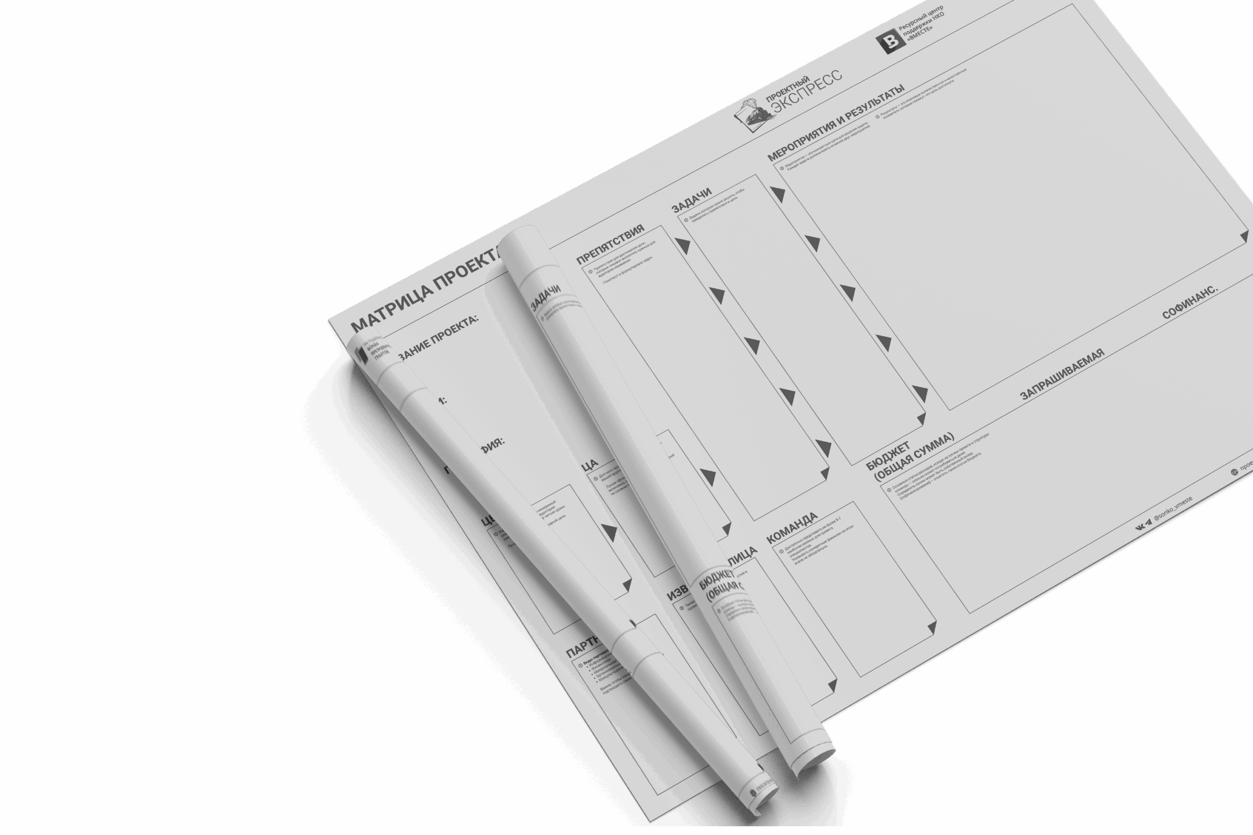Для разработки проекта мы создали матрицу проекта — удобную таблицу, благодаря которой можно проработать любую идею в кратчайшие сроки, не обладая знаниями социокультурного проектирования.