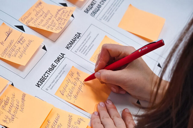 Удобно записывать свои идеи на стикеры и тасовать их на листе!